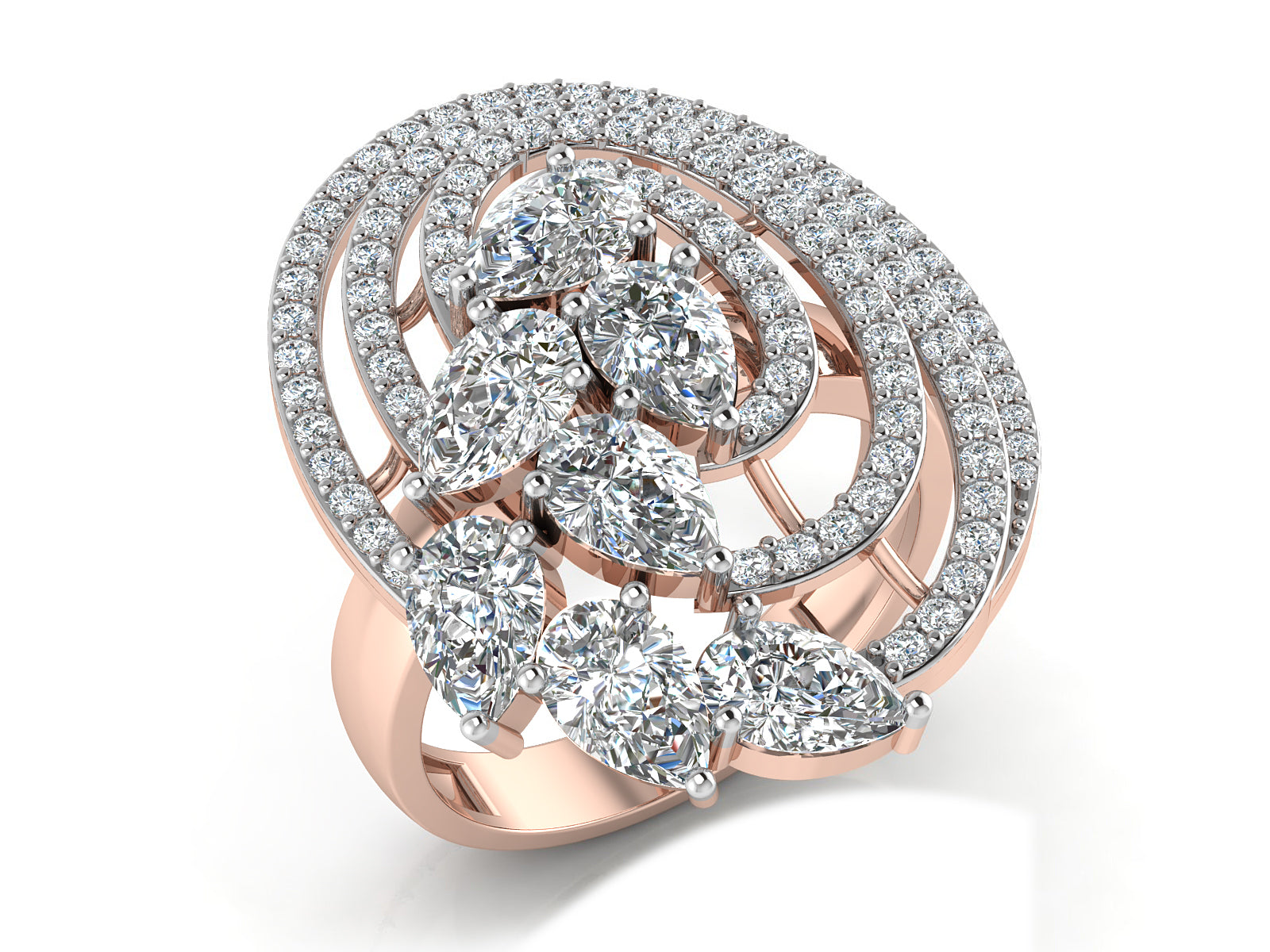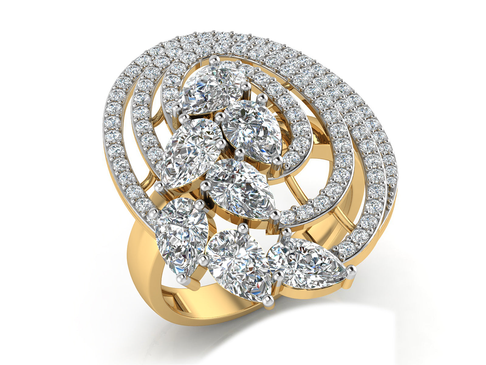 Experience the epitome of elegance with our "Aurora Brilliance" ring. This stunning masterpiece features an array of meticulously set pear-shaped diamonds, gracefully cascading across the finger, reminiscent of a radiant aurora. The intricate design is accentuated by concentric circles of pavé diamonds, creating a mesmerizing halo effect that amplifies the brilliance of each stone. Crafted in your choice of rose, white, or yellow gold, this ring is a testament to unparalleled craftsmanship and sophisticated style. Perfect for those special occasions or as an extraordinary gift, the Aurora Brilliance ring is sure to leave a lasting impression, exuding excellence and modern luxury.