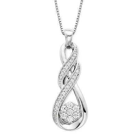The "Eternal Embrace Pendant" is a harmonious blend of symbolism and style. This elegant piece features a silver teardrop design, intertwined with a ribbon of diamonds that wraps gracefully around, signifying the unending strength of unity. At the base of the teardrop, a cluster of diamonds nestles securely, symbolizing the preciousness of cherished moments held within the embrace of enduring love. This pendant, hung on a sleek gold chain, is a versatile piece that adds a refined sparkle to any ensemble.