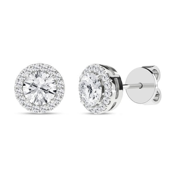 The Radiant Halo Solitaire Studs showcase a brilliant round-cut diamond at their center, exuding timeless elegance. Each central diamond is encircled by a delicate halo of smaller diamonds, enhancing the overall sparkle and creating a stunning visual effect. Set in a sleek and polished metal, these studs are perfect for adding a touch of sophistication to any ensemble. Whether for daily wear or special occasions, these earrings are a classic addition to any jewelry collection, symbolizing grace and everlasting beauty.
